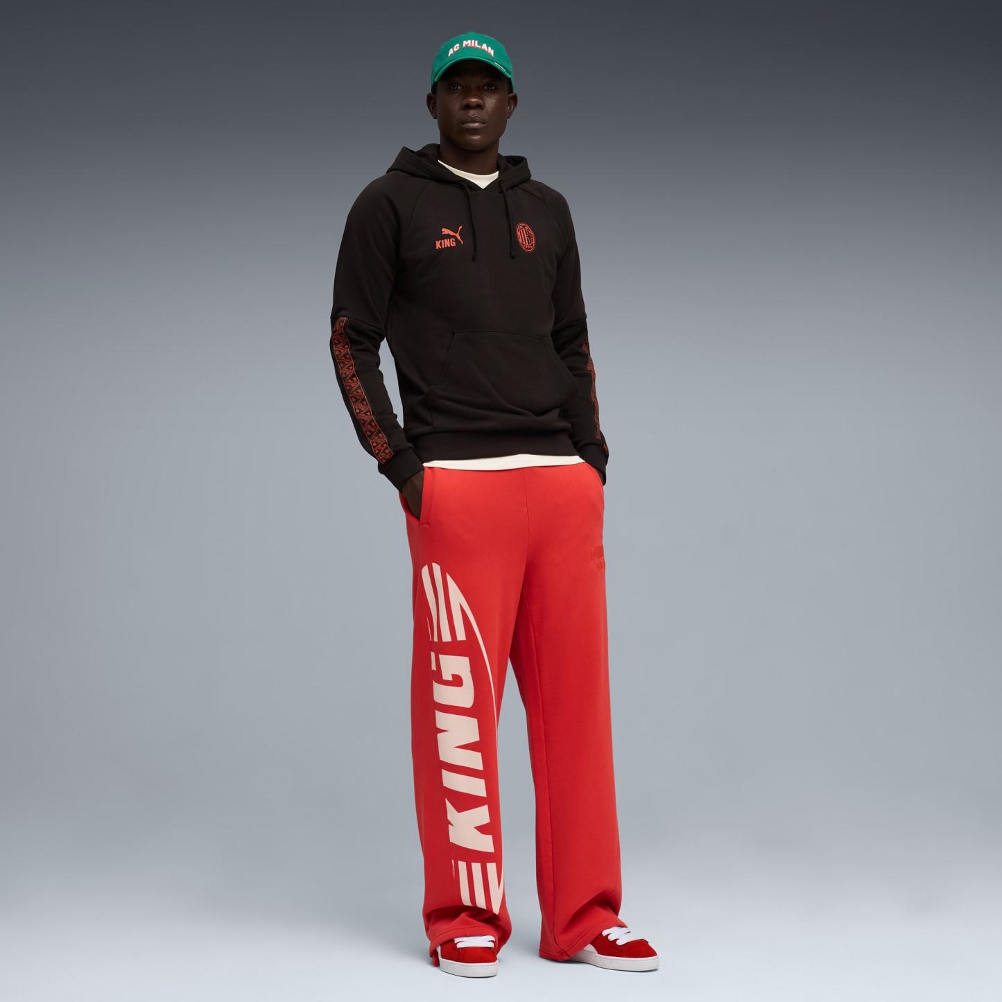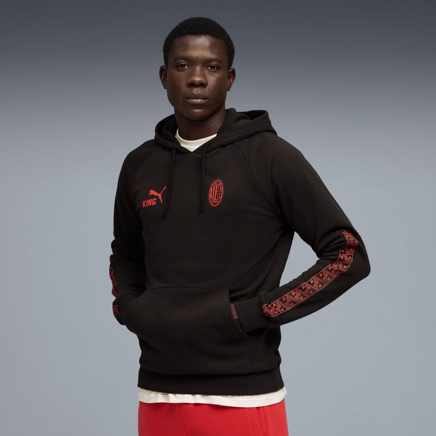Own your AC Milan club pride. This leisurewear pack celebrates the legacy of the KING line, blending timeless elements with an archive-inspired aesthetic. This hoodie is a tribute to true royalty on and off the pitch.