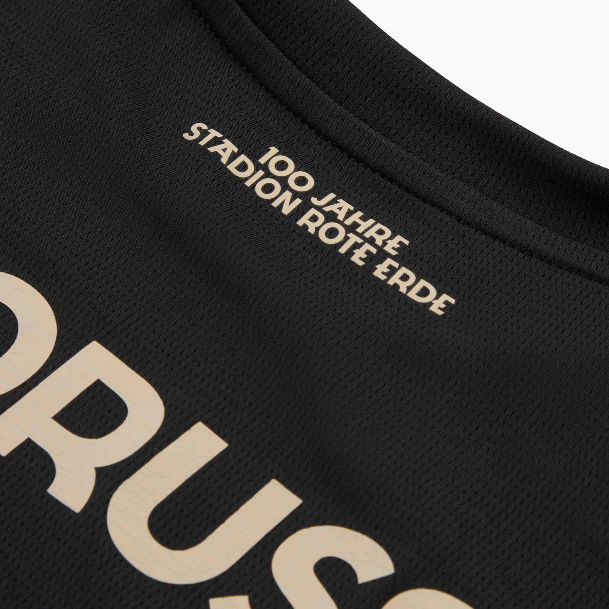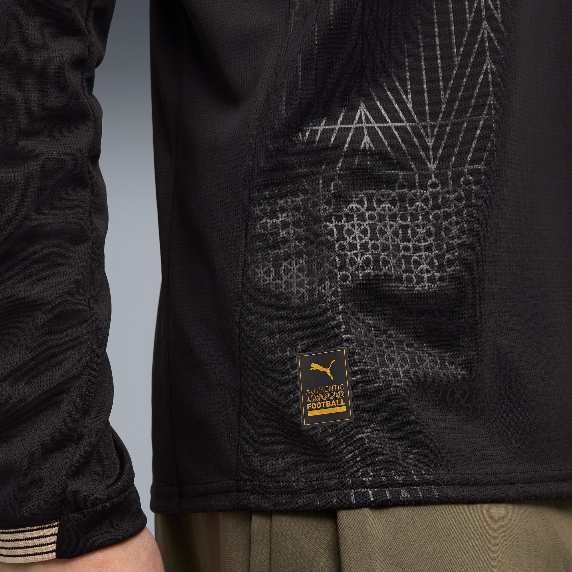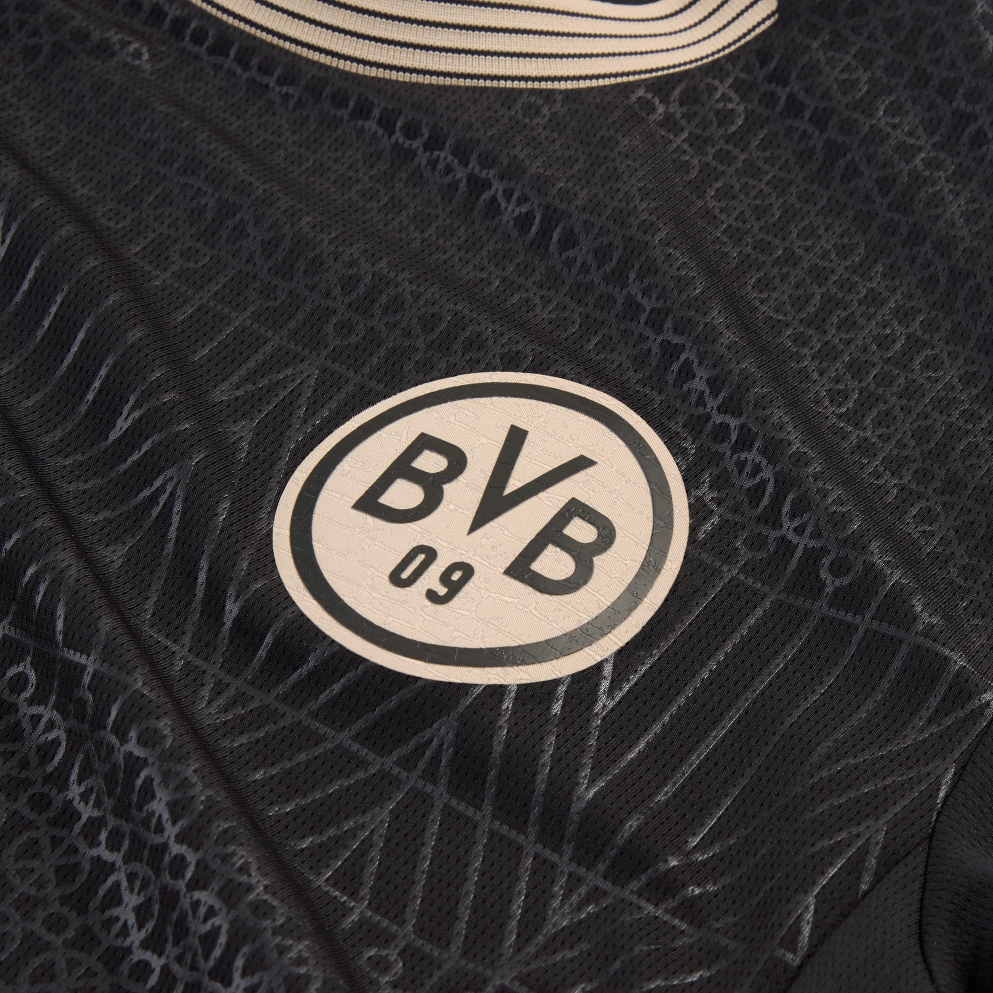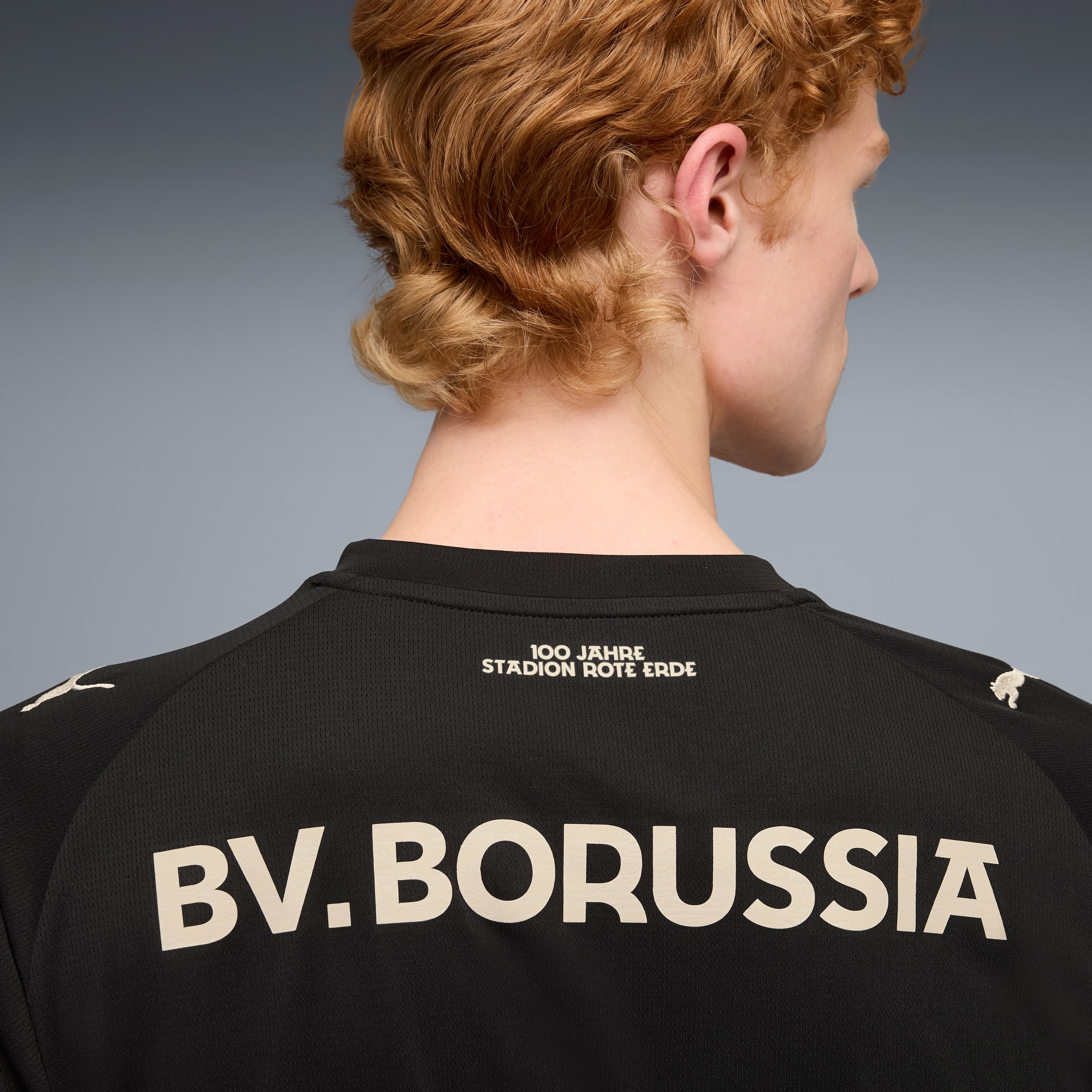 BVB’s 25/26 Special Kit celebrates a century of football at the iconic Rote Erde stadium – home to countless unforgettable Dortmund moments. With a tonal print that salutes Black and Yellow history, the design reps Rote Erde to the fullest, etching the stadium’s walls and gates into the fabric of the jersey. Complete with a clean sandstone finish, history’s never looked better.