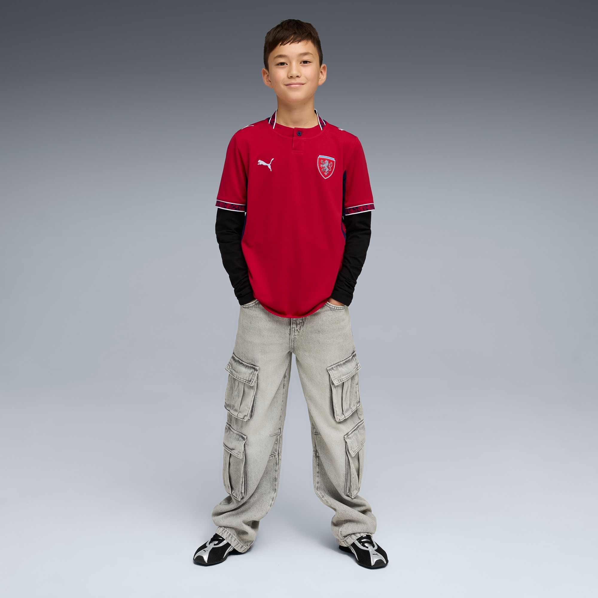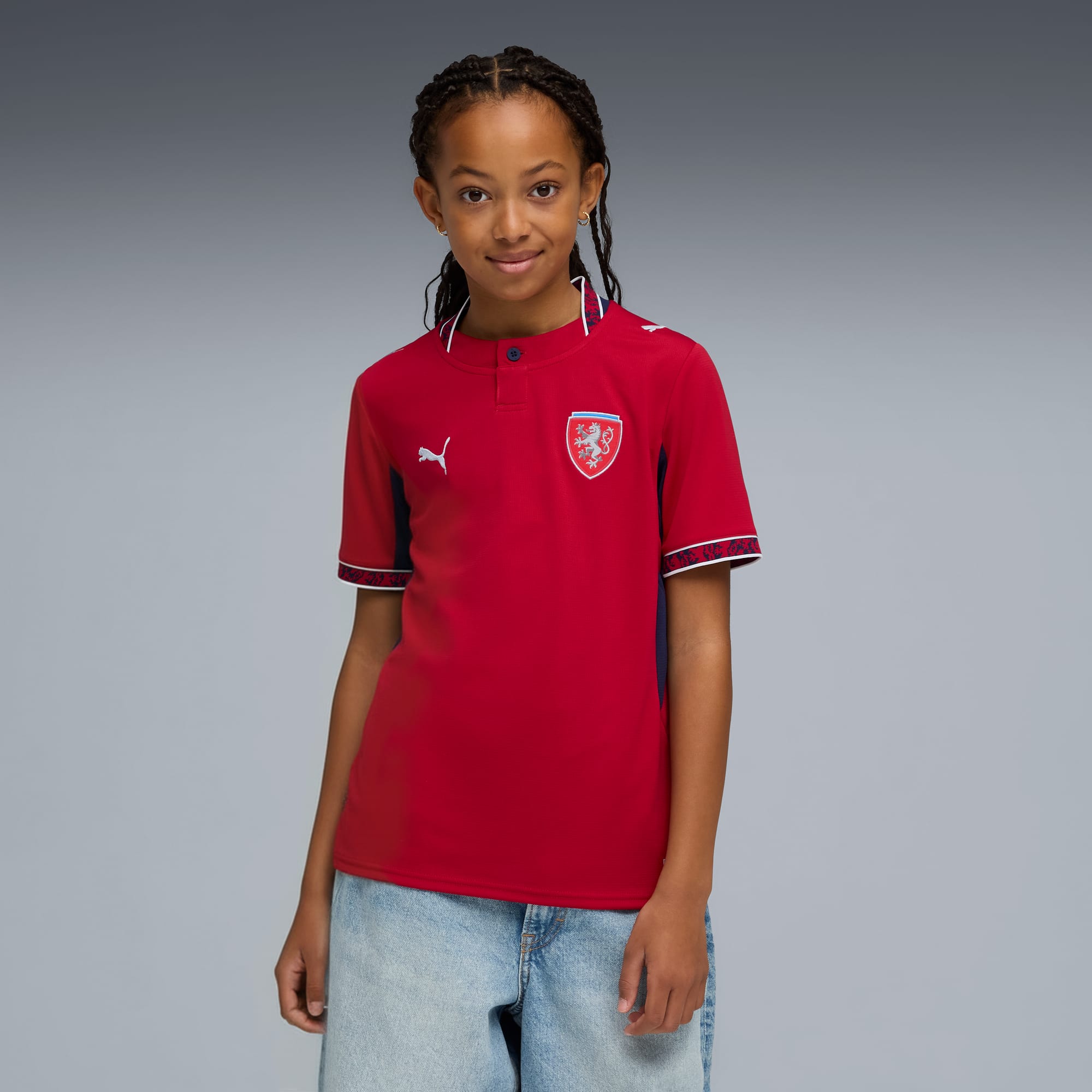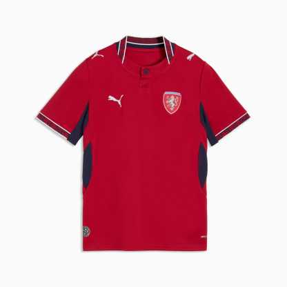 Czechia’s Home Kit honors the heroes of ’96, a team that captured the world’s imagination. Proud nods to the iconic double-tailed lion are paired with silver detailing for a design that celebrates the courage, unity, and pride behind the legendary campaign. Designed for the fans, the Replica jersey delivers the same match-worn look in a casual silhouette, with details and materials suited for both game day and everyday wear.