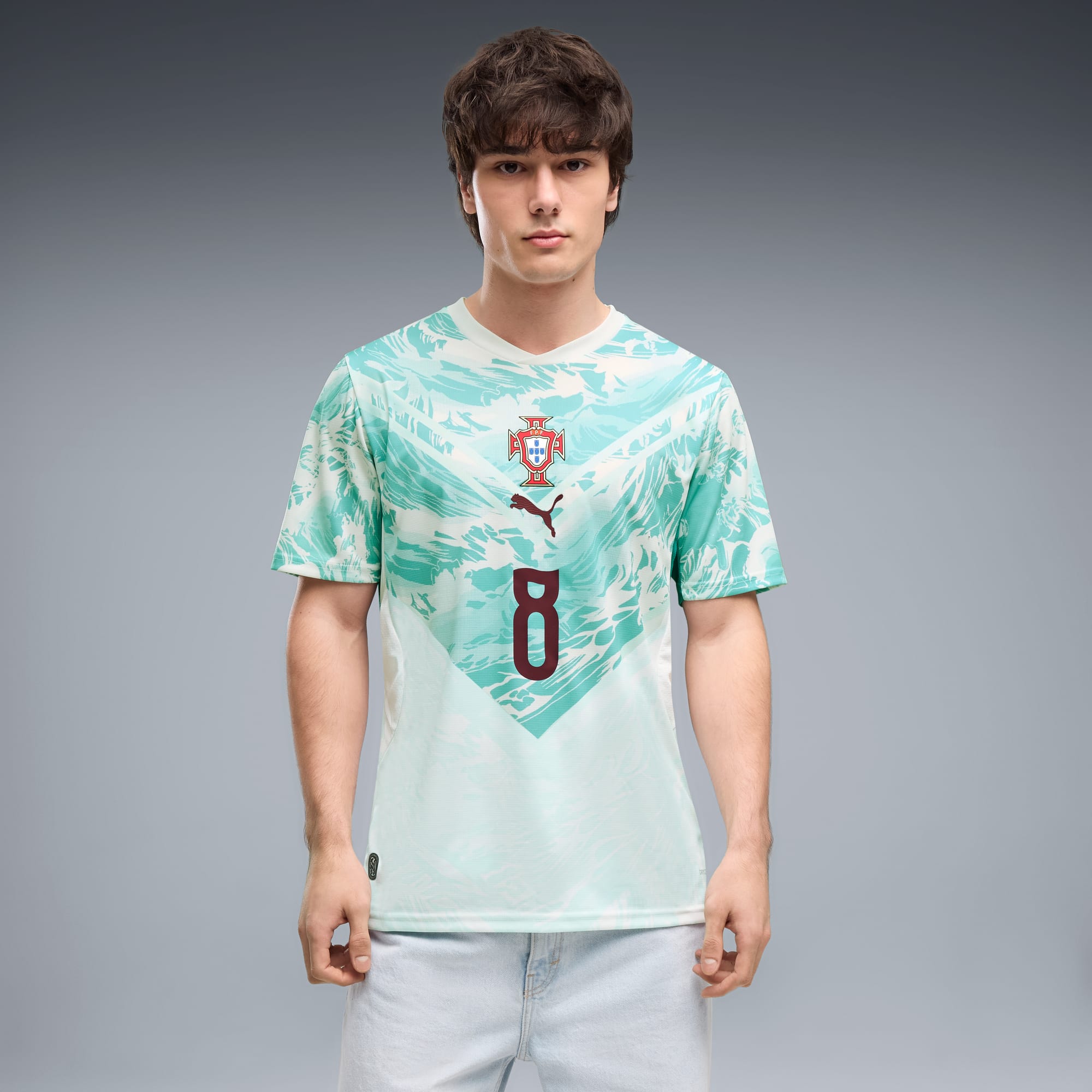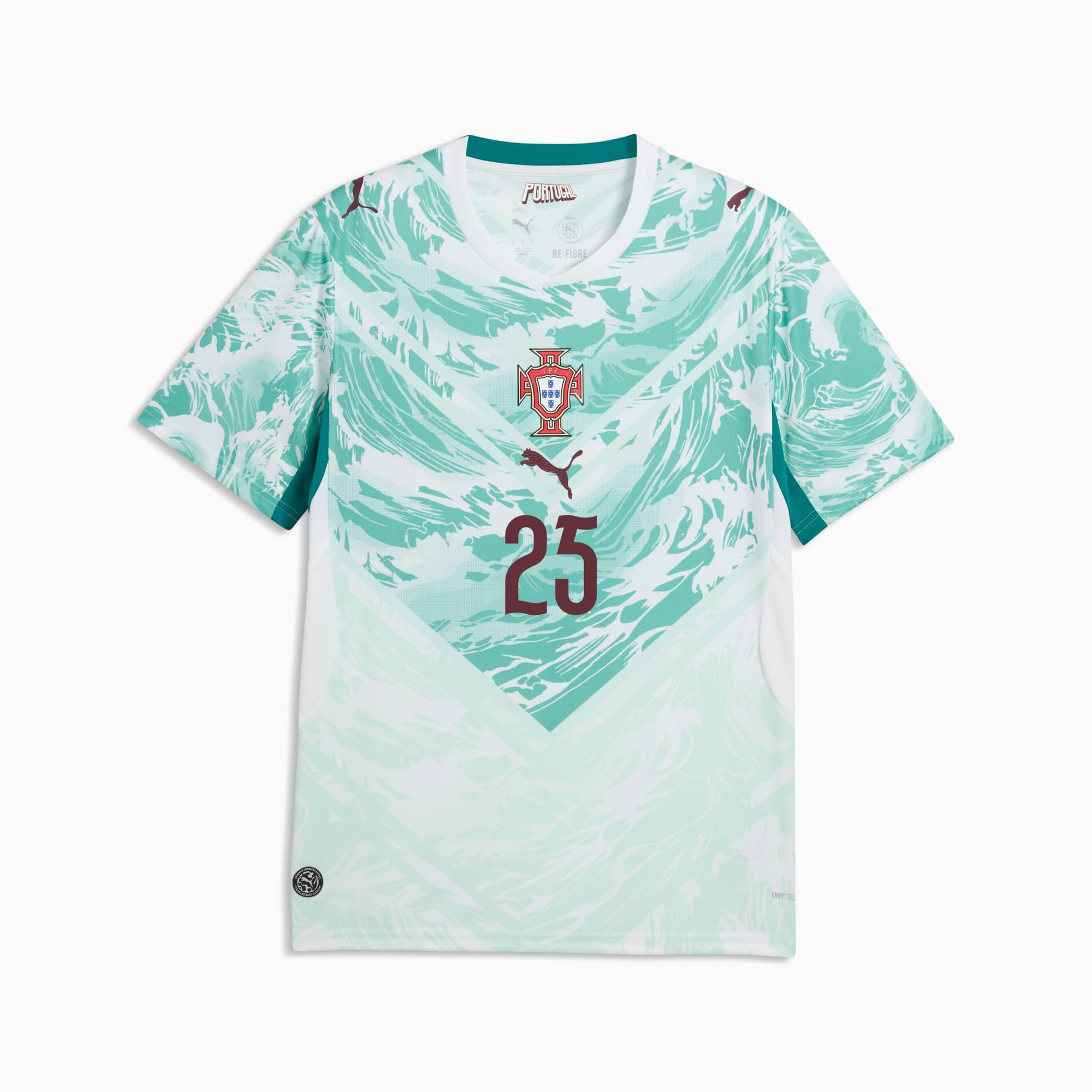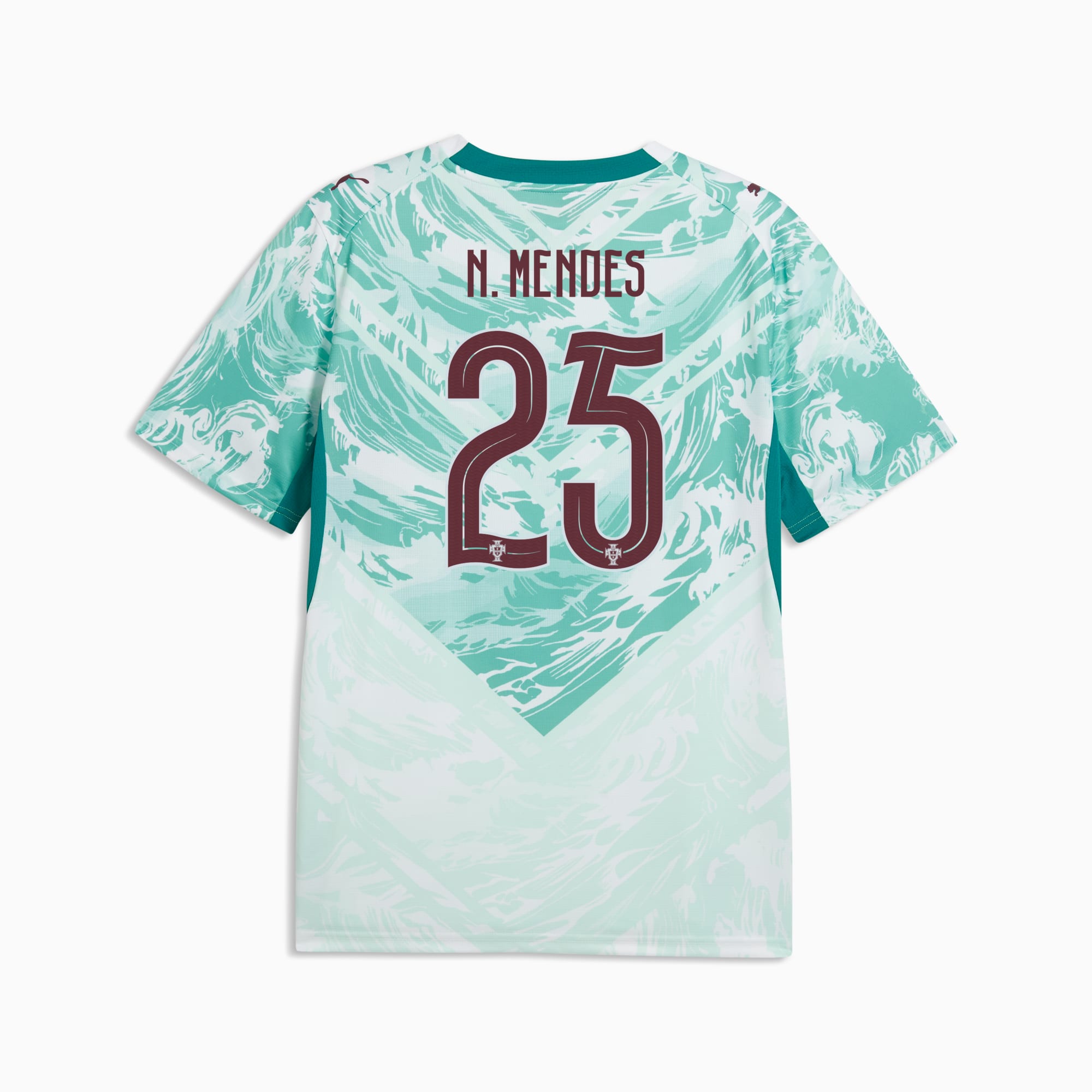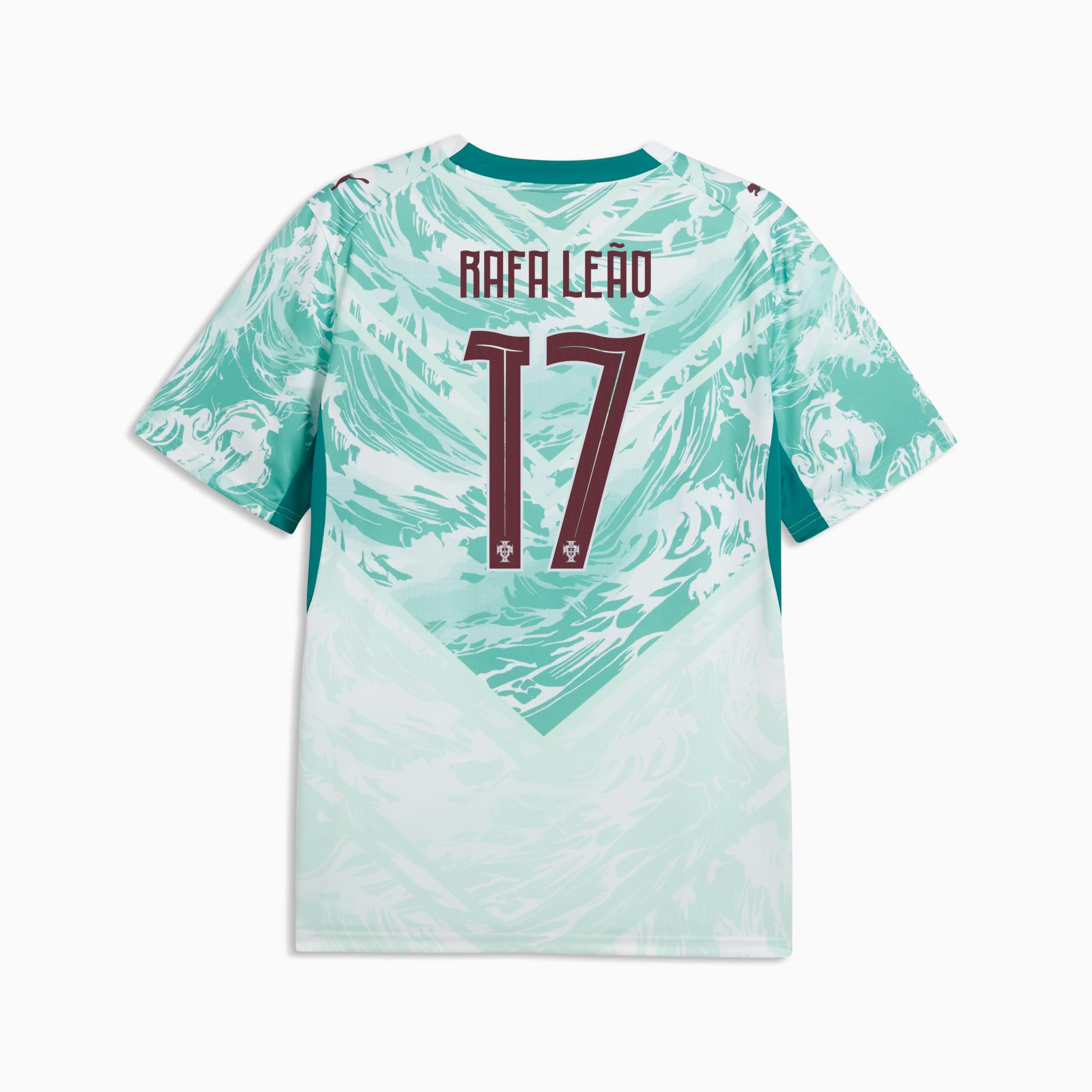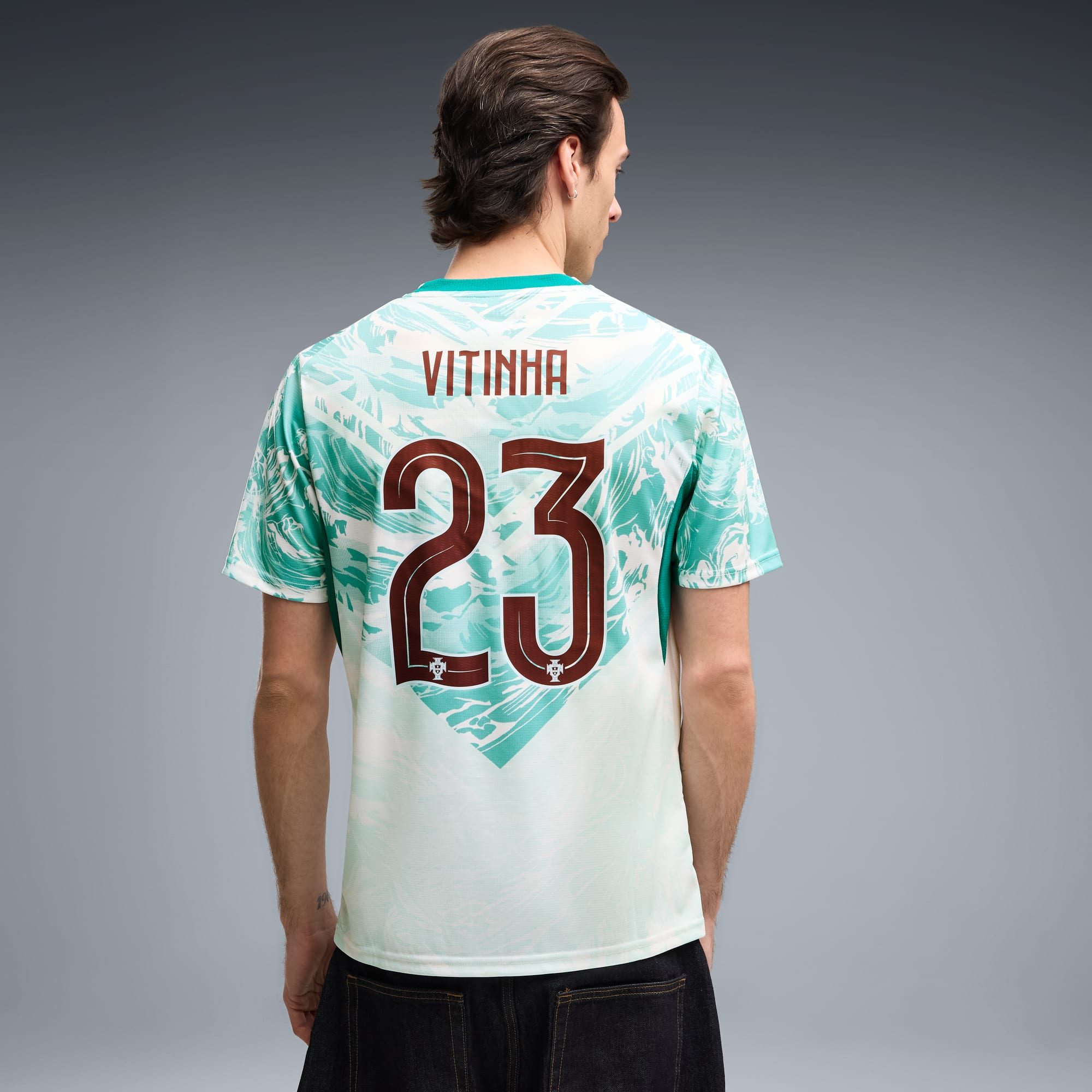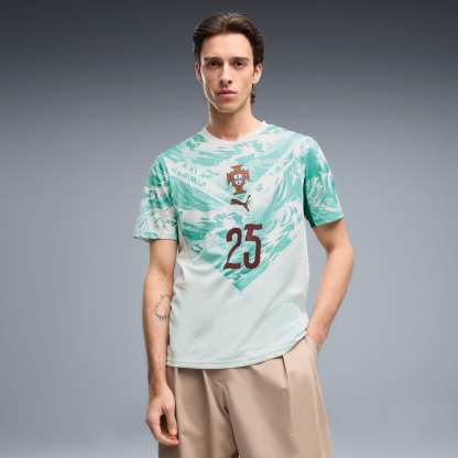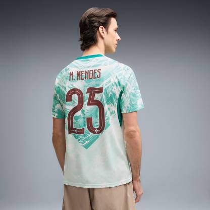 Inspired by the nation’s iconic players, Portugal’s Away Kit arrives in white and lagoon green that tie back to the ocean-inspired Home Kit. Designed for the world’s biggest stage, it connects generations who’ve given everything for the badge. This jersey pairs the same match-worn look with a casual silhouette, details, and materials, ideal for both game day and everyday wear.