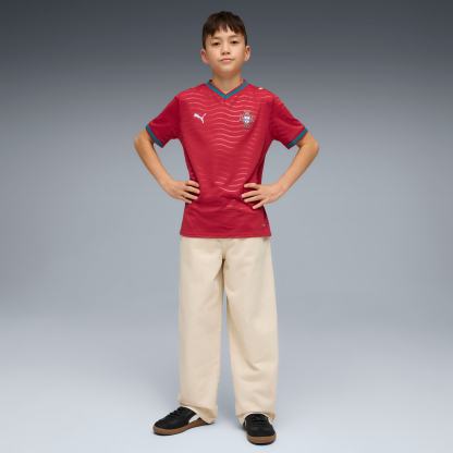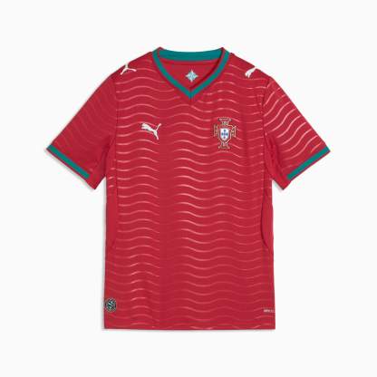 Portugal’s Home Kit channels the energy of the ocean and the intensity of a team ready to make waves on the biggest stage. The iconic red base is layered with a wavy pattern and green accents, a nod to the country’s maritime roots and fearless spirit. It’s a design that speaks to those who were born to explore and live to play por amor à camisola. Designed for the fans, this Replica jersey pairs the same match-worn look with a casual silhouette, details, and materials, ideal for both game day and everyday wear.