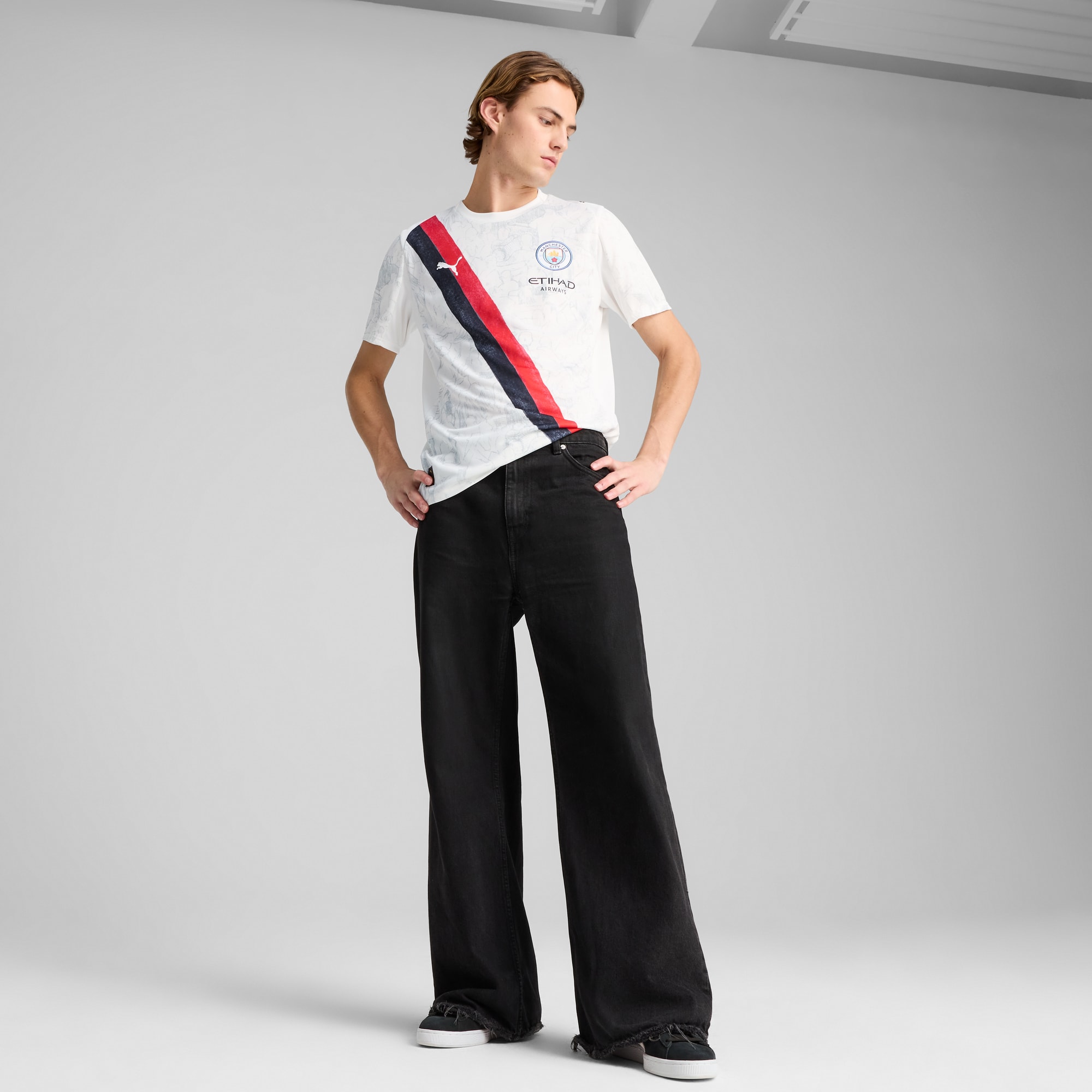 The classic is back – redrawn, repainted, and ready to play. The iconic sash design is back in the PUMA x KIDSUPER collection, reimagined with hand-painted graphics, a watercolor palette, and, as always with Manchester City, a whole lot of character. Inspired by Manchester’s graft and the pure joy of the Poznań celebration, it’s a fresh spin on a fan favorite – ready to show up on the global stage.