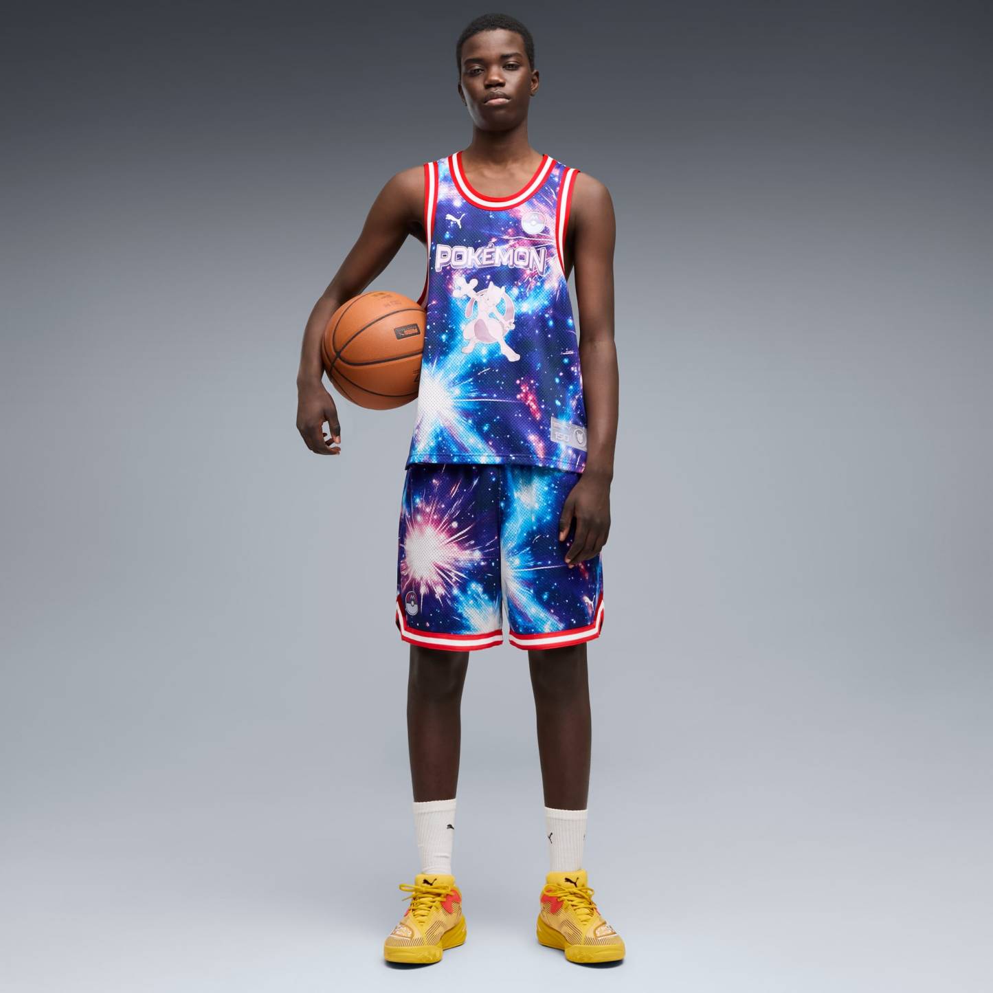 Choose your partner for your next adventure with the new PUMA x POKÉMON collection. All the power of the Pokémon world is channelled into this latest drop, with Pokémon designs taking you from day to night. Whether you’re into the mysterious nature of Umbreon or the electrifying vibes of Pikachu, there’s something for every Trainer. This basketball jersey comes with Mewtwo graphics on lightweight mesh.