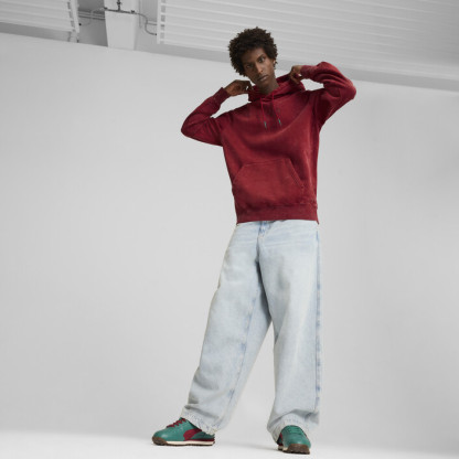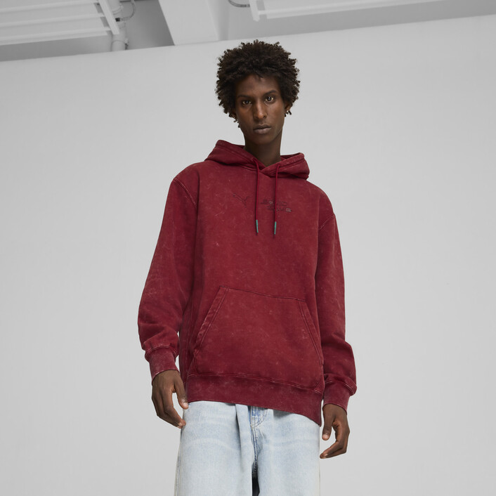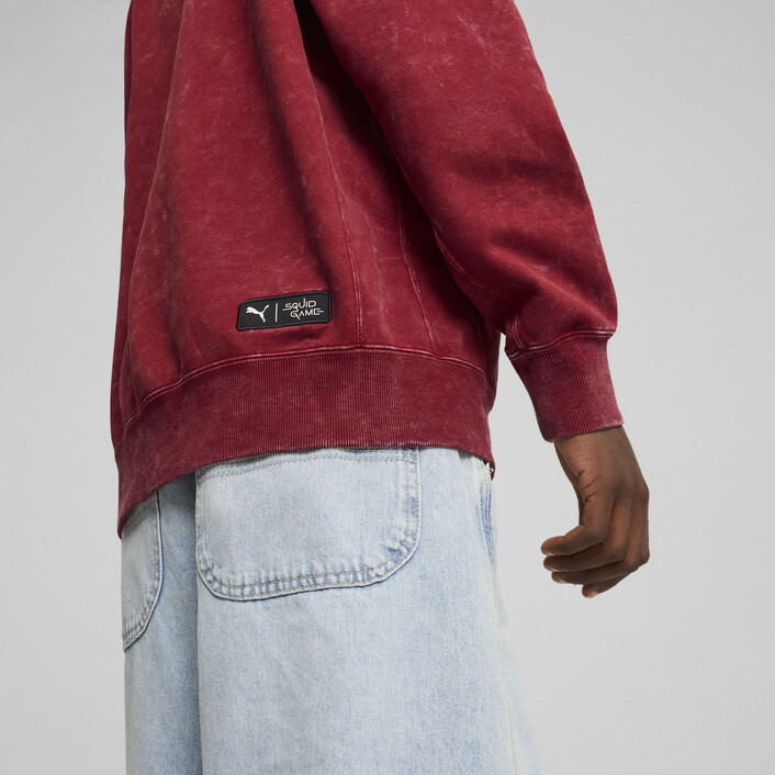 Attention, players: PUMthtA x SQUID GAME is here. Created in anticipation of Squid Game’s second season, this collection of streetwear staples blends PUMthtA’s effortless sport-style with Squid Game’s iconic DNA. Look for classic T7 track suits, velour, allover prints, and illustrative graphics inspired by elements from the show. Classic sneakers are reimagined with details from Red Light, Green Light and the iconic staircase. Part of the collection, this hoodie is contructed from a soft fleece fabric with ribbed cuffs and hem. It’s time to enter the game – do you have what it takes to win?